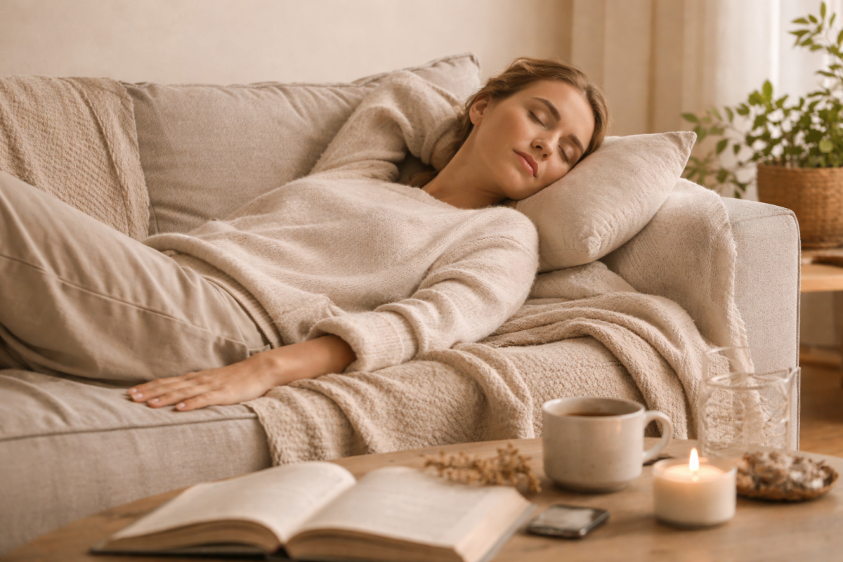 No es necesario disponer de largos espacios de tiempo para practicar el descanso. A veces bastan unos minutos bien habitados. Un momento al final del día, un gesto de pausa antes de dormir, un espacio donde el cuerpo pueda tumbarse sin exigencias.