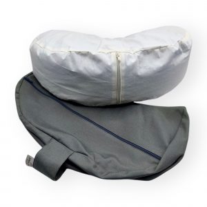 El zafú media luna ZAFUZEN Atelier es un cojín de meditación diseñado para proporcionar una postura cómoda, estable y natural durante la práctica de meditación o yoga.