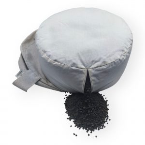 El relleno de cáscara de trigo sarraceno aporta firmeza adaptable y transpirabilidad. Gracias a su funda interior, la cantidad de relleno puede ajustarse para adaptar la altura del zafú a cada persona.