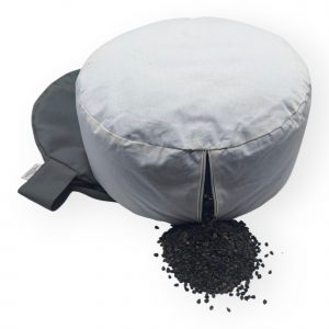 El relleno de cáscara de trigo sarraceno aporta firmeza adaptable y transpirabilidad. Gracias a su funda interior, la cantidad de relleno puede ajustarse para adaptar la altura del zafú a cada persona.